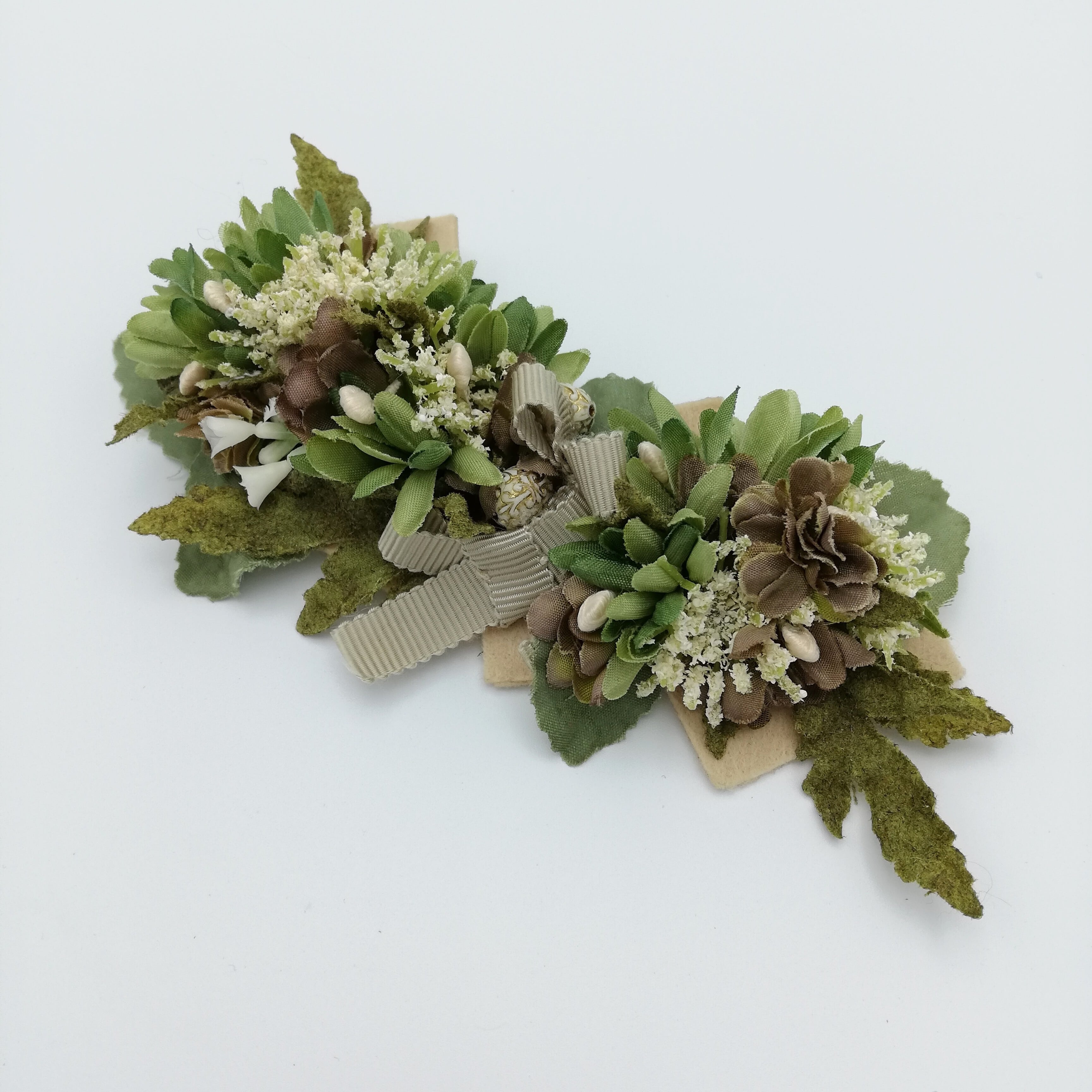 ナチュラルなかわいい雰囲気をまとって。お花とリボンのブローチ。