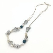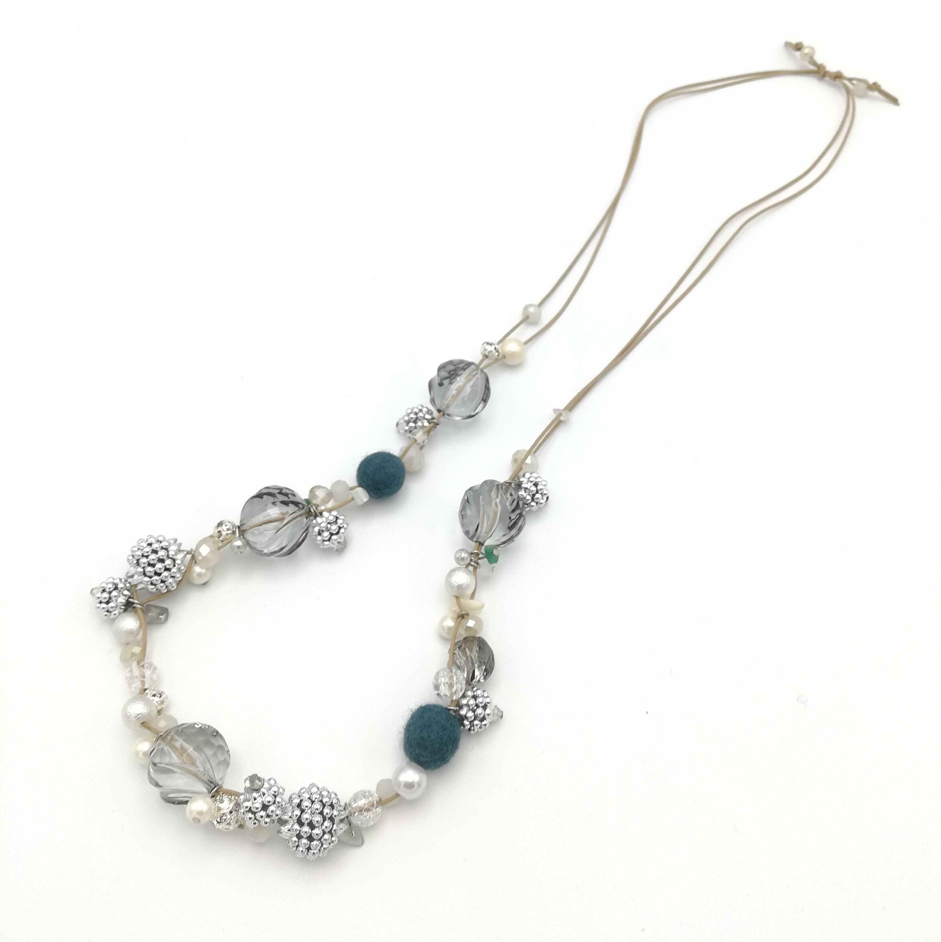 クリア・シルバー・青緑・白・羊毛フェルト・パール・ビーズ・上品・シック・おしゃれ ~透明感のある大人のアクセサリー