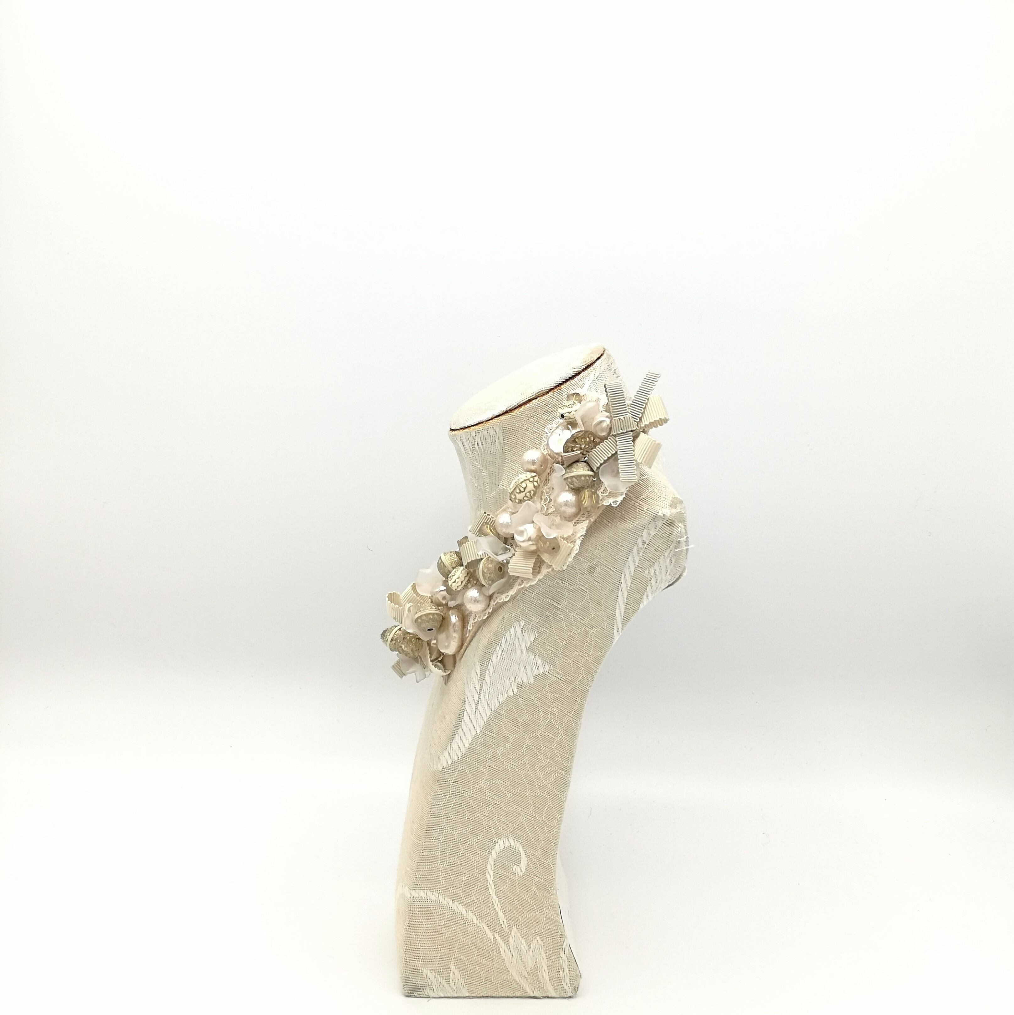 /リボン/エクリュ/ベージュ/オフホワイト/花/花びら/ドイツビーズ/ビーズ/パール/